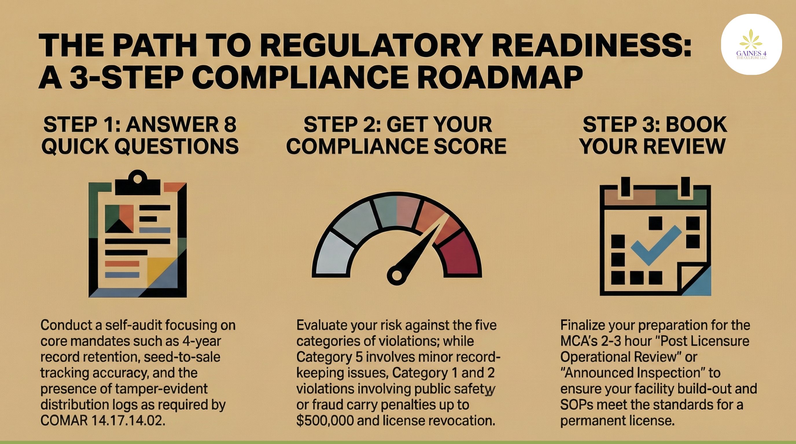 The Cannabis Compliance Check is a quick, judgment‑free diagnostic that shows you exactly where you stand financially, operationally, and regulator‑wise, before you spend money or face an inspection.